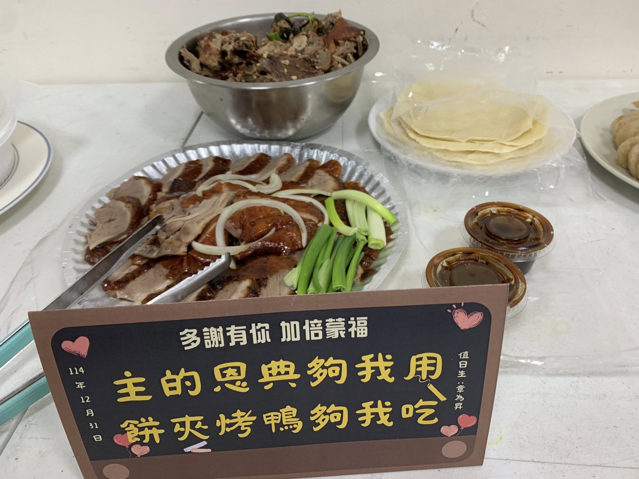 「返校日」不僅是心靈的回顧,更是肢體的相交。當晚,每個家庭都端出精心準備的「一家一菜」,餐桌上不只菜色豐富,更盛滿了分享、笑聲,和彼此的陪伴。這份溫馨的團契,正是教會生活的寫照——我們不只是一群聚在一起的人,更是一個在主裡彼此相愛、扶持的大家庭。