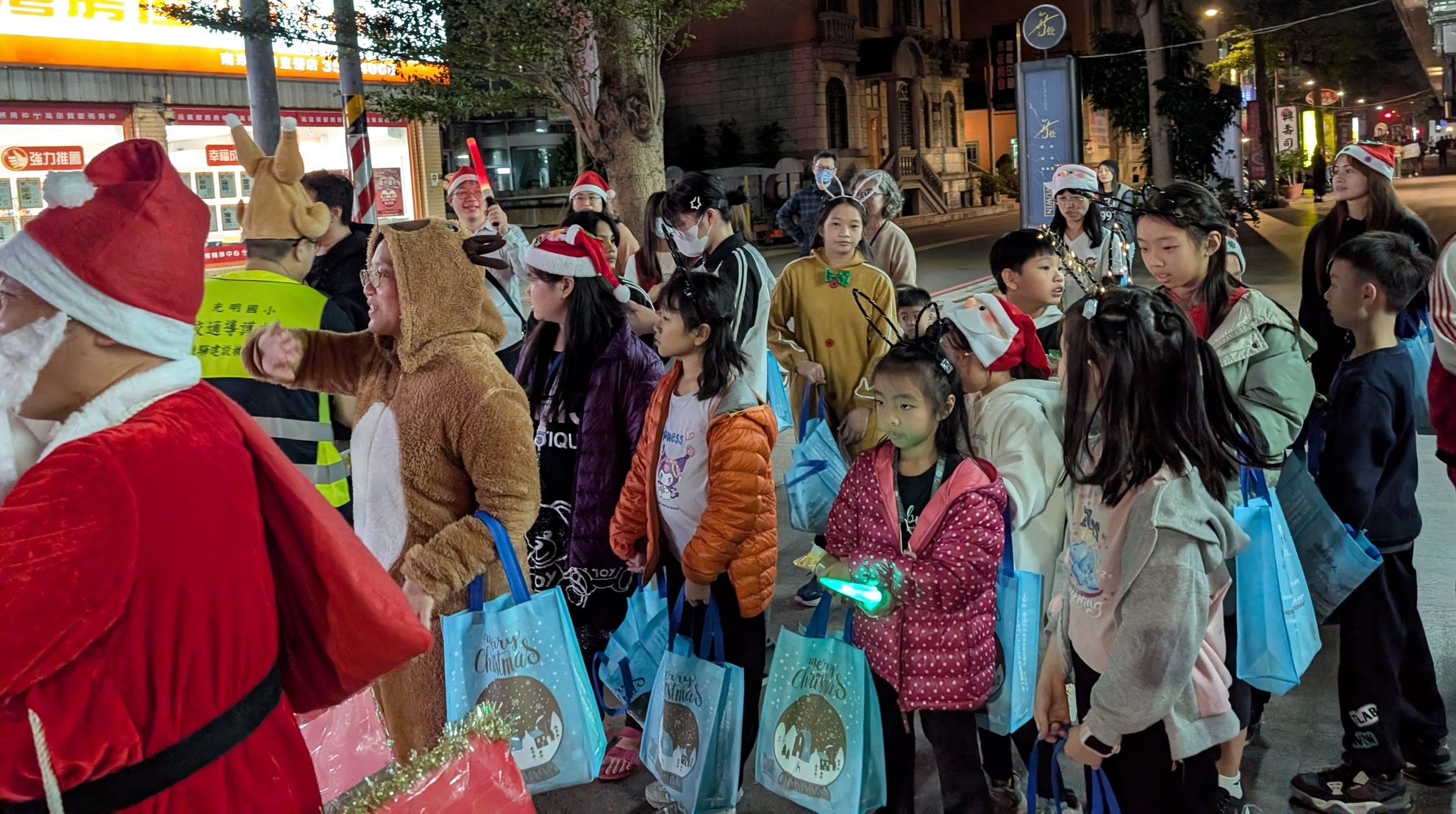 平安夜的晚上,當下南崁的街燈漸次亮起,我們從南崁多加教會(位於桃園市蘆竹區南福街100號)出發,唱著一首又一首熟悉的聖誕詩歌。那晚,我們的隊伍中有大人、有孩子,每個人臉上都洋溢著單純的笑容。我們手中提著事先精心準備的40大袋糖果與餅乾,這不只是一份小小的禮物,更是我們想分享給社區朋友的一份心意、一份祝福。