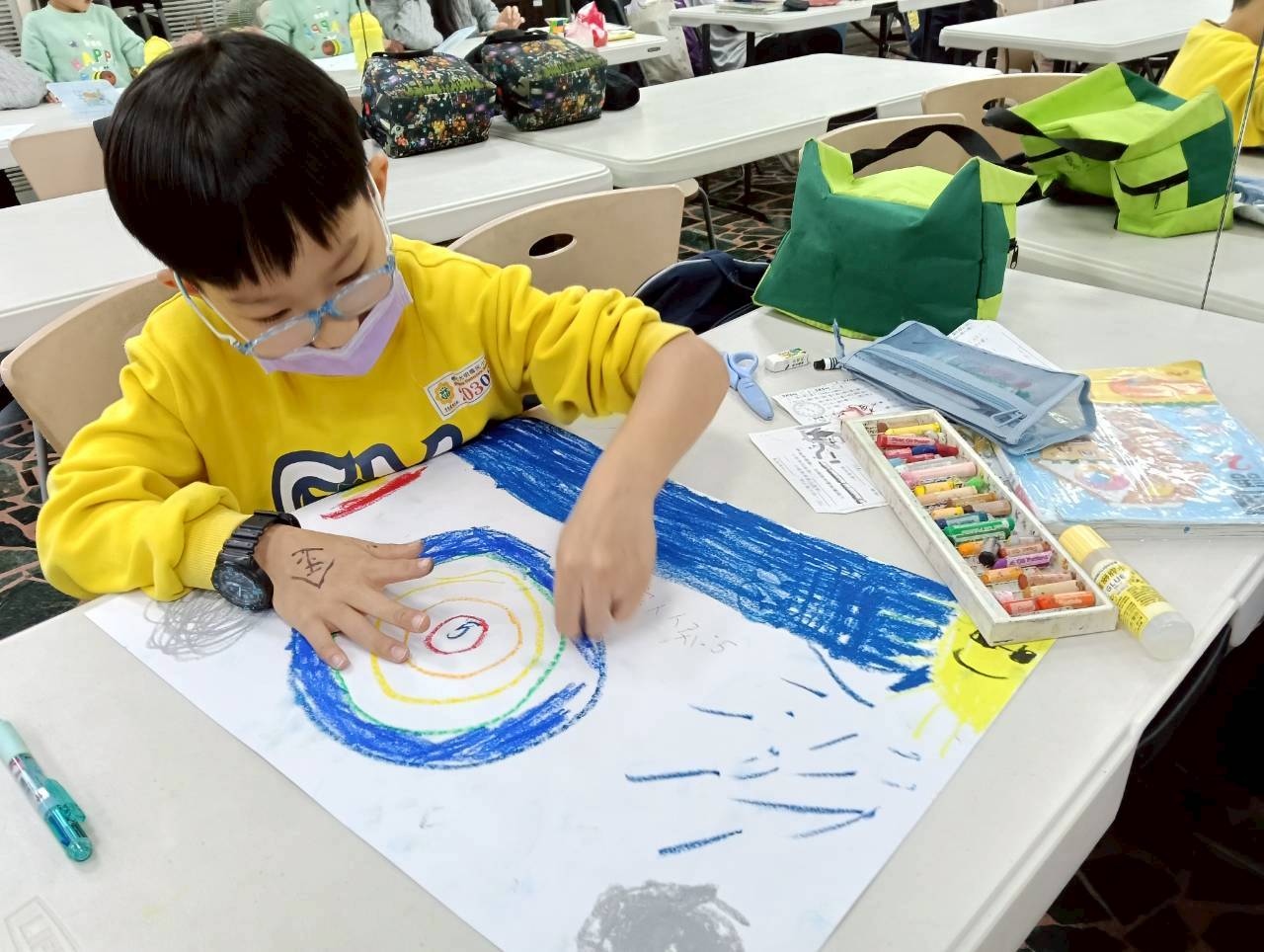 這次國小兒童團體活動,特別結合了「敘事取向」與「表達性藝術治療」兩種專業輔導技巧。這兩種方法都強調以孩子為中心,讓他們成為自己故事的主角,並透過非語言的方式,安全地表達內心的感受。