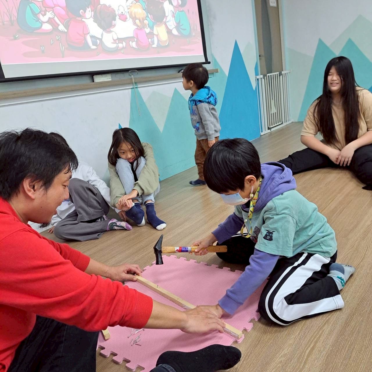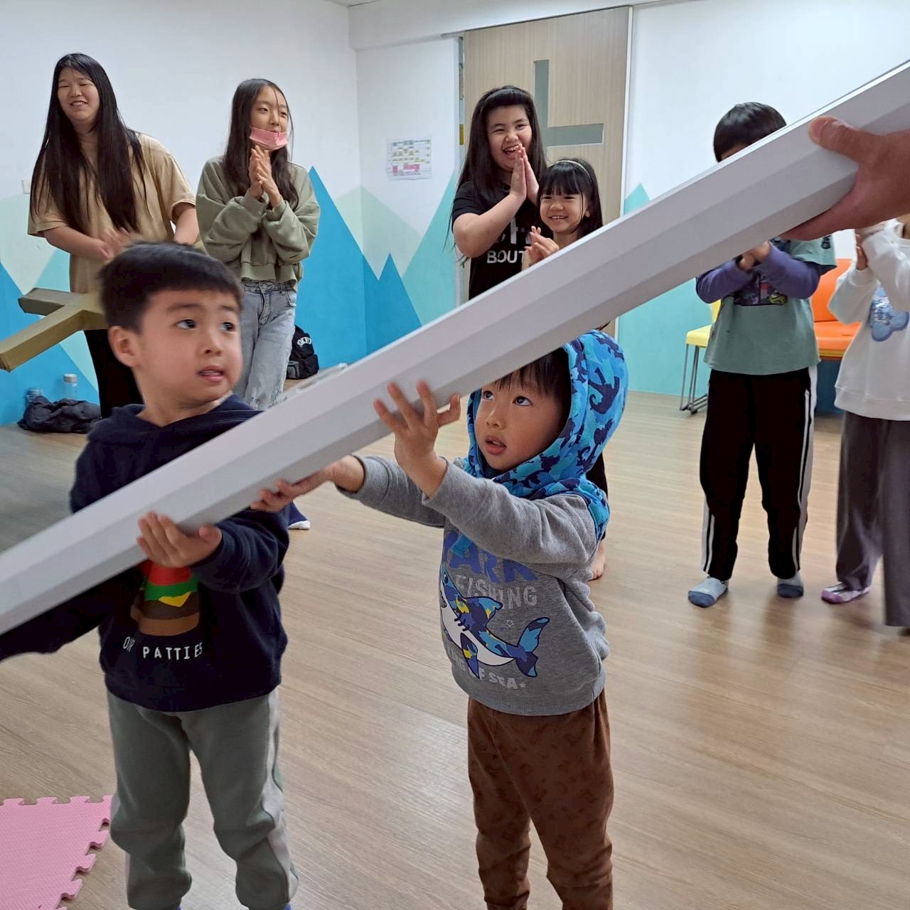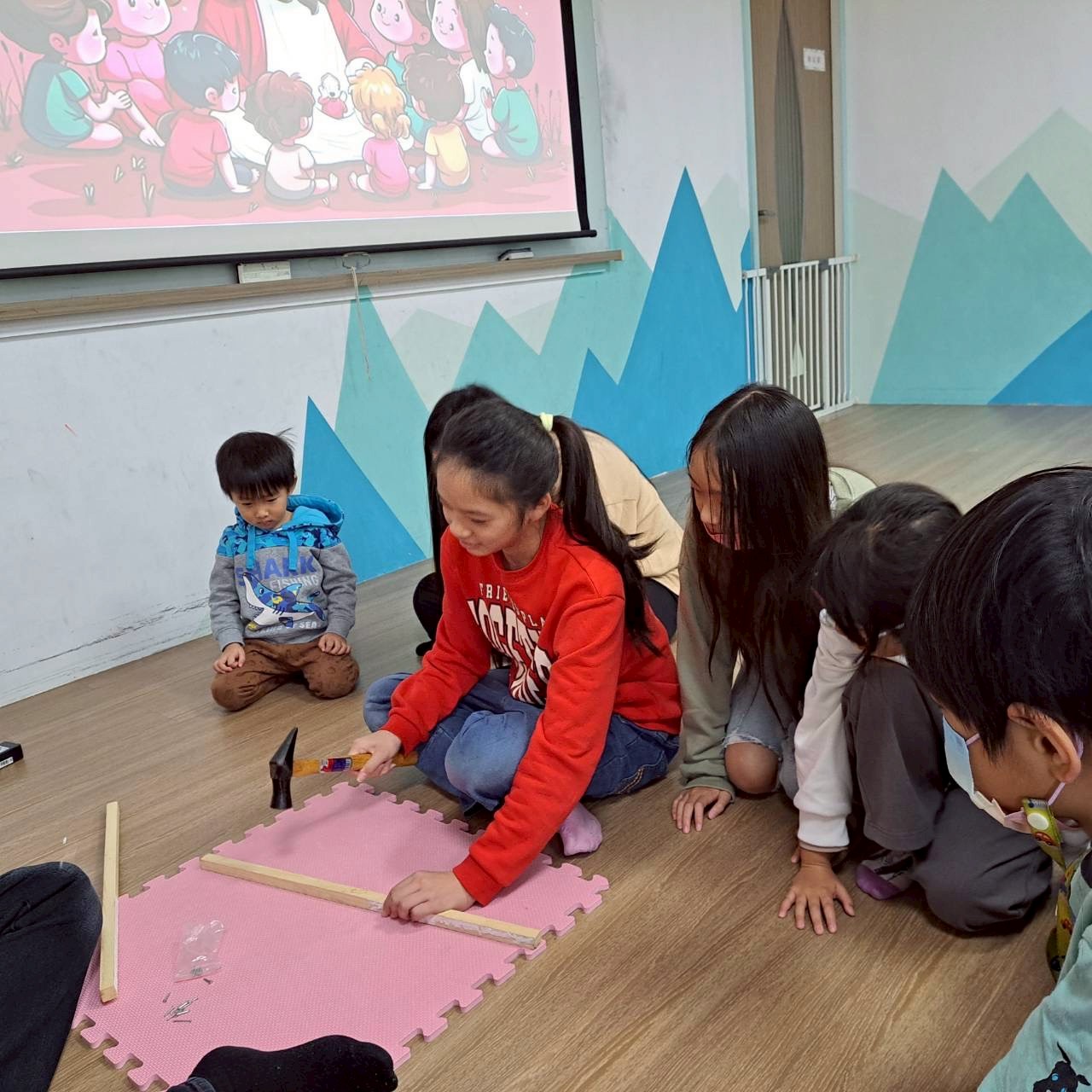 孩子們不是旁觀者,而是故事中的一員。他們拿起小小的鐵鎚,將釘子一下一下地釘進木頭裡。這不是一場遊戲,而是一個充滿意義的過程。每一次敲擊,都伴隨著老師們溫柔的引導,將聖經中耶穌在各各他路上所承受的痛苦、所展現的愛與犧牲,一點一滴地傳遞給孩子。